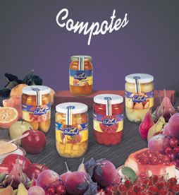 compotes, peach compotes, pear compotes and fruit salad. |